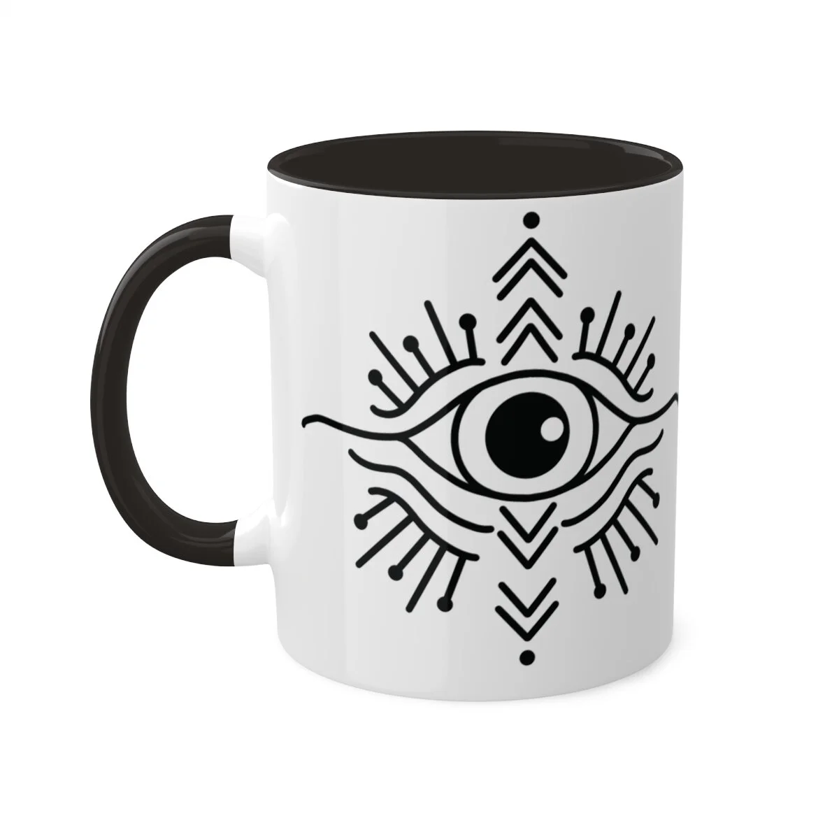 Start the morning off right or keep all the negativity away at work with this Evil Eye Mug. These mugs hold 11oz of your favorite pick-me-up and come with a black handle and interior. The glossy finish adds a classy touch that perfectly complements the high-fidelity artwork print.